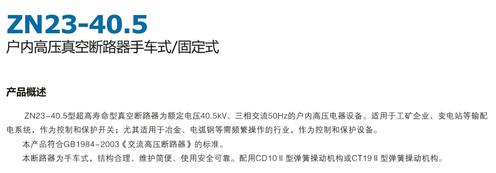 ZN23-40.5户内高压真空断路器手车式/固定式